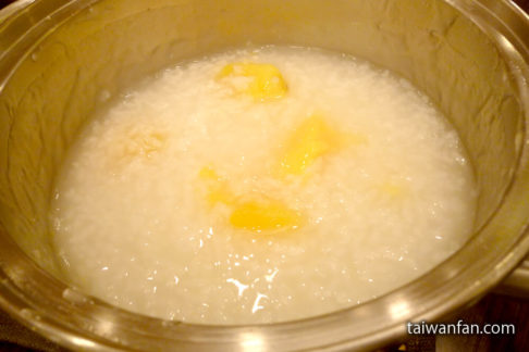 このお粥は1テーブル1個つくみたいで、中にはお芋(サツマイモ?)がはいってて