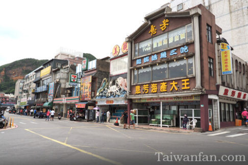 台湾式のその場で魚を選んで料理をしてくれる海鮮料理のお店がいっぱいです。バス停近くにはコンビニエンスストア7-11があります。