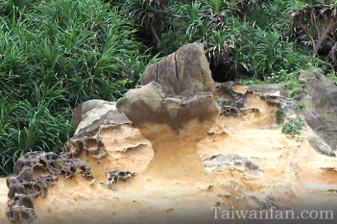 野柳で一番みられる形。よく見ると無数の穴があります。[